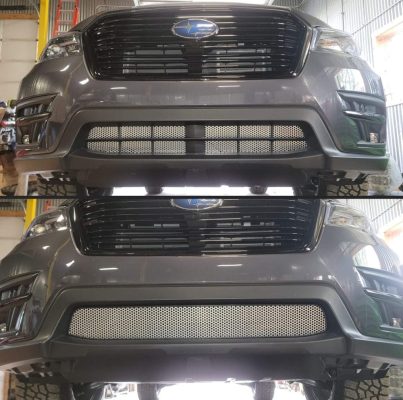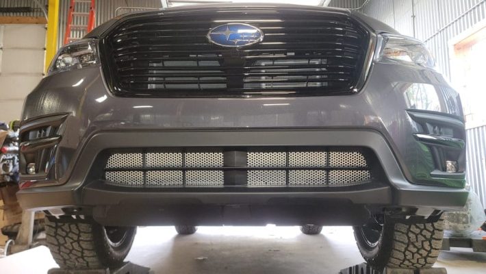 If damaged, the Subaru Ascent A/C condenser can be very expensive to repair. The Subaru Ascent “A/C Condenser Guard” has been designed to protect against most debris over 1/4 inch diameter from entering the lower grill opening and damaging your A/C condenser. The Condenser guard is constructed of 14g aluminum and powder coated for durability. Testing has been performed to ensure airflow and cooling remain as close to factory specifications as possible while providing great protection. The “A/C Condenser Guard” can be installed in front of the existing grill (easy install) or behind existing grill. (bumper cover removal required) This product utilizes double sided, automotive grade adhesive foam for mounting. No drilling or zip ties are necessary when installing.